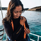 Mit flachen Nähten und einem langen Schnitt, der sicherstellt, dass keine Lücke zwischen Oberteil und Leggings entsteht, ist das Oberteil die ideale erste Schicht auf der Haut unter deinem Trockenanzug. Daumenlaschen halten die Ärmel in Position, während du den Trockenanzug anziehst. Vor dem Tauchen solltest du die Daumen aus den Laschen nehmen und sie durch die Handgelenksmanschetten zurückschieben.